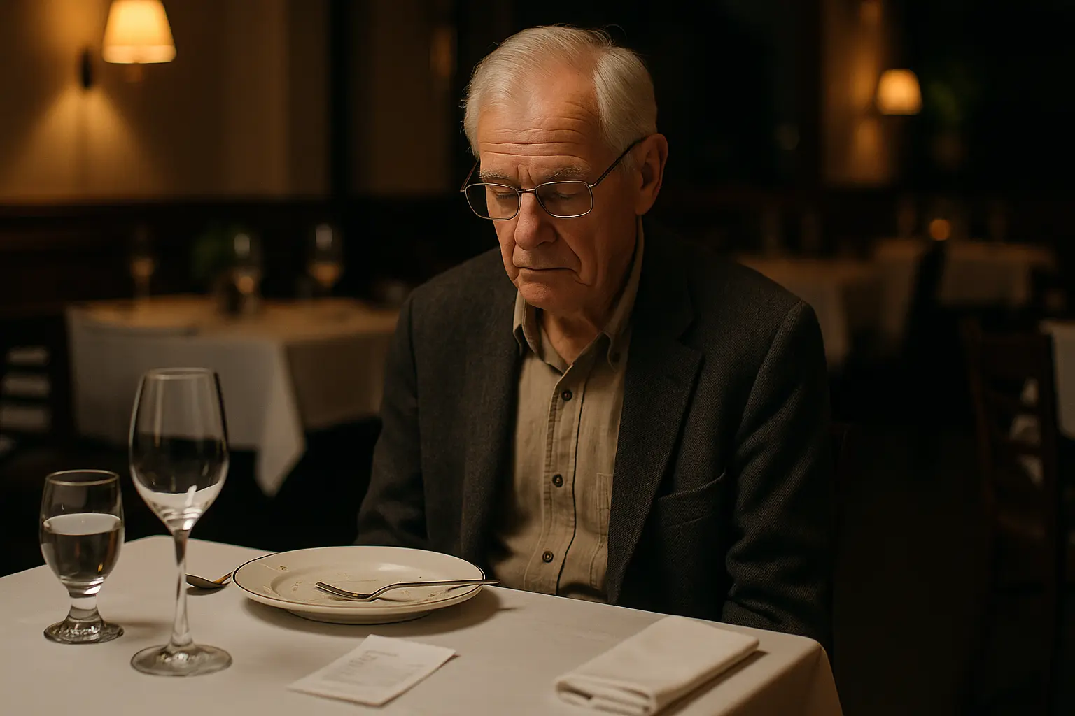 Esa noche, al llegar a casa, dejó la chaqueta sobre la silla y se sentó en silencio. La casa estaba limpia, ordenada, pero vacía. Aún podía escuchar las voces de los suyos, las risas, el ruido de los cubiertos. Todo seguía ahí, menos ellos. En la mesa quedaba la tarjeta del restaurante con un “Gracias por su visita” impreso en letras doradas. La miró un momento y la guardó en un cajón. No sabía por qué, pero quiso conservarla, como si necesitara recordar aquel instante en que entendió que algo había cambiado para siempre.
