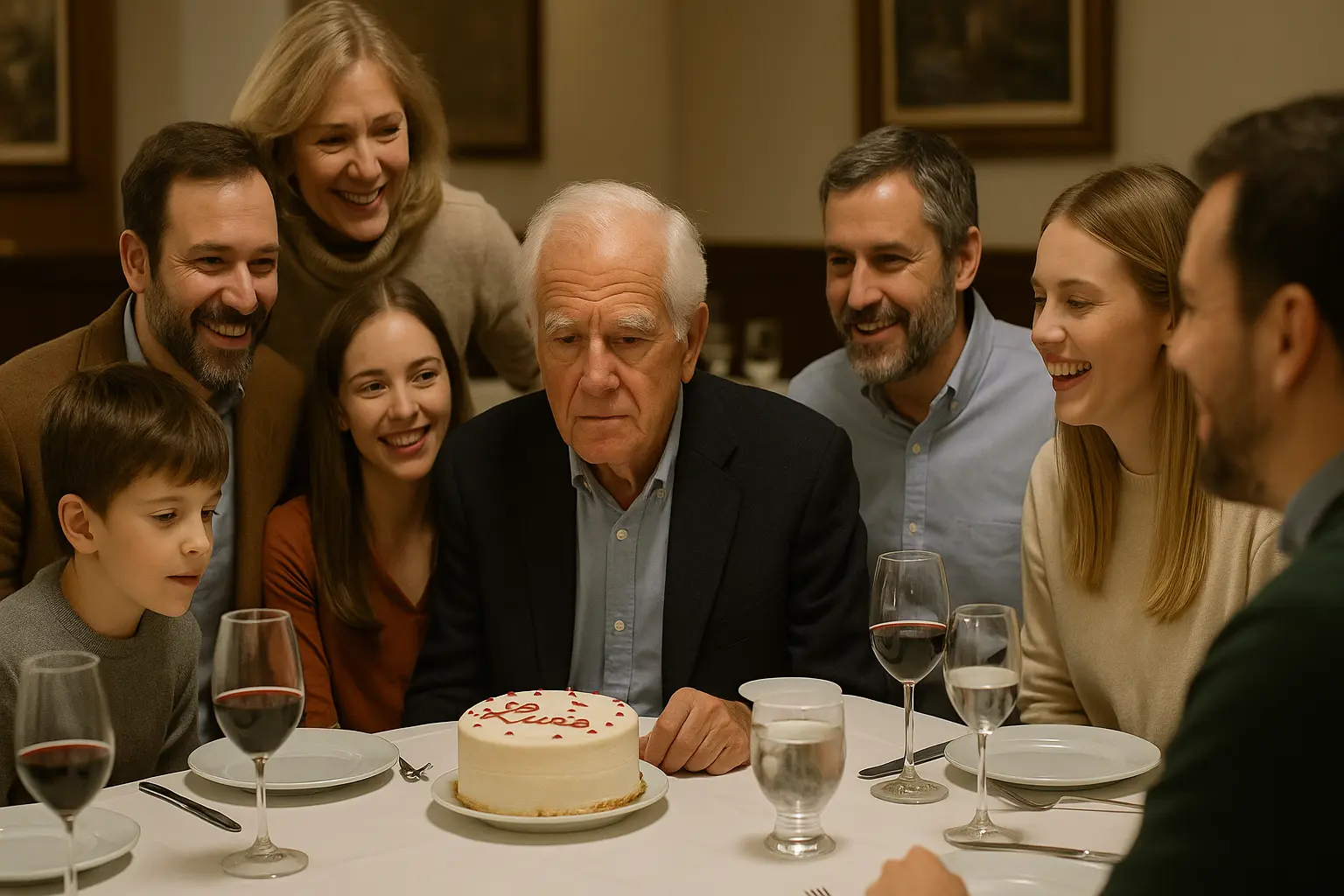 Pasaron unos meses, y el próximo cumpleaños se acercaba. Uno de sus hijos propuso hacer otra celebración, “esta vez más sencilla”. Luis sonrió y dijo que prefería algo pequeño, en casa. Nadie insistió demasiado. Así que preparó una comida por su cuenta: algo de carne al horno, vino modesto y una tarta que compró en la panadería del barrio. Vinieron solo dos personas: una vecina y un sobrino. Fue una tarde tranquila. No hubo discursos ni fotos. Solo conversación, risas suaves y silencio cómodo. Esa noche, al acostarse, sintió paz. Pensó que, tal vez, la felicidad no depende de la cantidad de gente que te rodea, sino de la sinceridad de quienes se quedan.