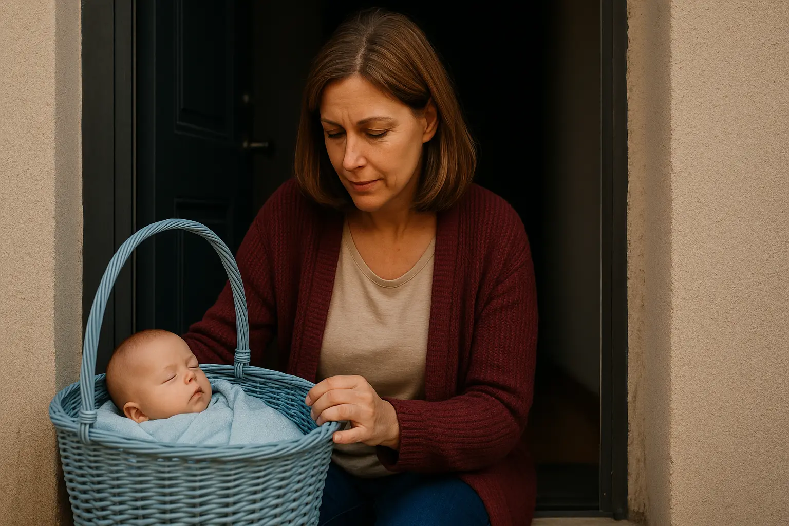 A la mañana siguiente, sonó el timbre. María abrió la puerta con una sonrisa nerviosa, esperando encontrar un cachorro en una caja, pero el pasillo estaba vacío. Solo había una cesta de mimbre cubierta por una manta azul. Se inclinó, y el corazón se le detuvo por un instante: dentro dormía un bebé, envuelto con cuidado. A su lado, una nota escrita a mano decía: “Perdóneme, no puedo cuidarlo. Ayúdelo usted, por favor”. Durante unos segundos no supo qué hacer. Bajó corriendo las escaleras, pero en la calle solo vio la sombra de un coche alejándose. El bebé se movió, y su llanto suave la devolvió a la realidad. Lo tomó entre sus brazos con torpeza, sintiendo por primera vez el peso cálido de una vida que dependía de ella.
